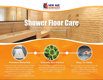 You won't need brochures when you use our much improved digital sales presentation - the only tool (aside from physical samples themselves) you'll need to make a sale from beginning to end. This simple and convincing flyer will differentiate our shower floor from the other options and will set you up for an easy sale. But for those who insist on including paper brochures, we can supply you with these professional glossy brochures at your request: